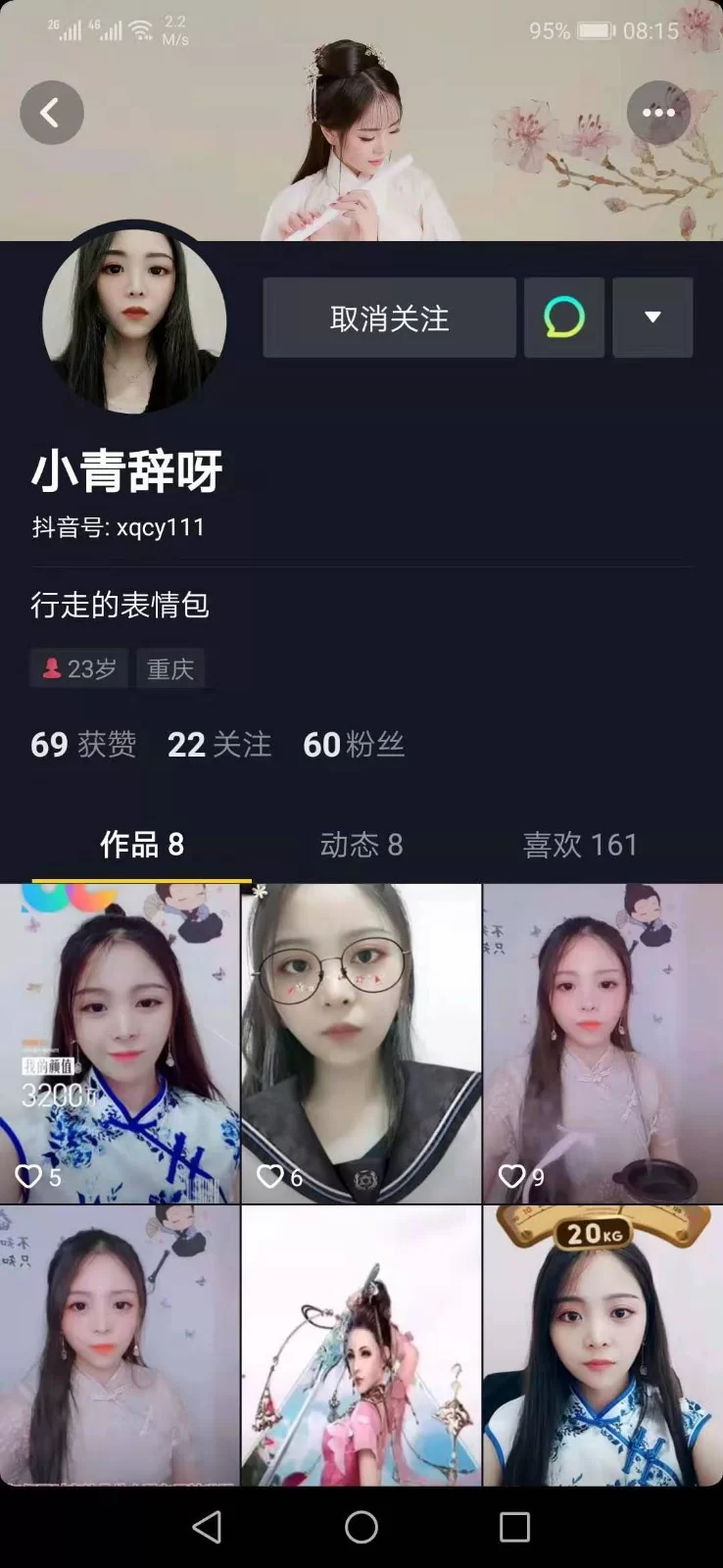 我是去重庆出差,在酒店闲来无事就看附近的人,聊了聊竟然特别可爱,刚开始让她出来玩,他还不愿意,后来深入了解之后才知道原来是个兼职,知道了之后就直接给他发了位置。接下来就是等他过来了,穿了个紧身连衣裙,很短的那种,一进门就直接按到墙上一顿亲,然后洗澡的时候口爆了一次,然后就是各种嘿咻嘿咻。干完了之后看他在刷抖音,于是就关注了他的抖音号,之后出去请他吃了个饭,竟然又跟我回了酒店,又免费干了一炮,我估计这小骚货不是为了挣钱,等我下次试试能不能免费,哈哈哈哈哈。