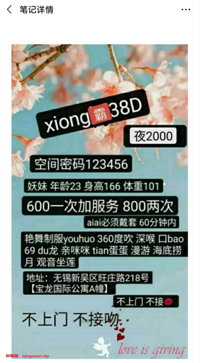 信息分类:酒店会所 地区:江苏省-无锡 信息来源:老哥稳 数量:1 年龄:23?? 素质:70 外形:整容脸 服务项目:口 毒龙 座 价格:6p 做完再来一次2米 营业时间:11-11 环境设备:租的公寓 安全评估:安全回来 详细地址:本段信息已隐藏,请先登陆。点击登陆 , 或者 点击注册 联系方式(电话/QQ/微信):本段信息已隐藏,请先登陆。点击登陆 , 或者 点击注册 综合评价:叫的还阔以,舌头很灵活,就是服务太快。总体感觉60分吧。 详细介绍: 酒店会所