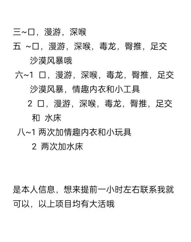 信息分类:楼凤兼职 地区:天津市-天津市 信息来源:群 年龄:35 颜值身材:8 服务项目:自己挑 价格:3-5-8-10 环境设备:8 详细地址:本段信息已隐藏,请先登陆。点击登陆 , 或者 点击注册 联系方式(手机/电话):本段信息已隐藏,请先登陆。点击登陆 , 或者 点击注册 详细介绍: 冲吧兄弟们, 楼凤兼职