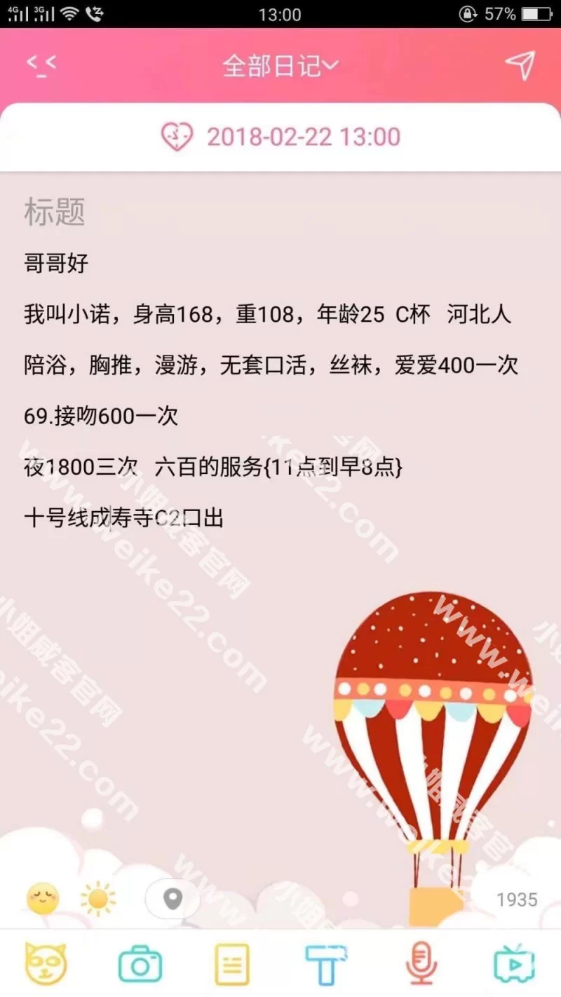 信息分类:楼凤兼职 地区:北京-丰台 信息来源:群里 小姐数量:1 小姐年龄:30+ 小姐素质:服务态度特差,长得也老 小姐外形:一般 服务项目:ML 营业时间:自己联系她 环境设备:一般 安全评估:一般 详细地址:本段信息已隐藏,请先登陆。点击登陆 , 或者 点击注册 联系方式(手机号/QQ/微信):本段信息已隐藏,请先登陆。点击登陆 , 或者 点击注册 综合评价:差劲 详细介绍: 威客管理提示:要求付定金 保证金的,总之提前要钱的都是骗子 说好的服务都没有,而且服务态度特别差,还骂人。说东北人时间短,上海人磨磨唧唧的,长得老气,谁要是想花钱买不舒坦尽管去。 楼凤兼职